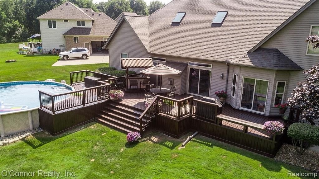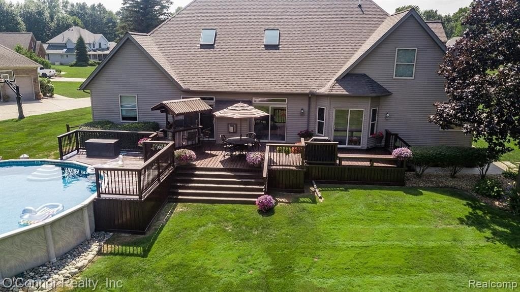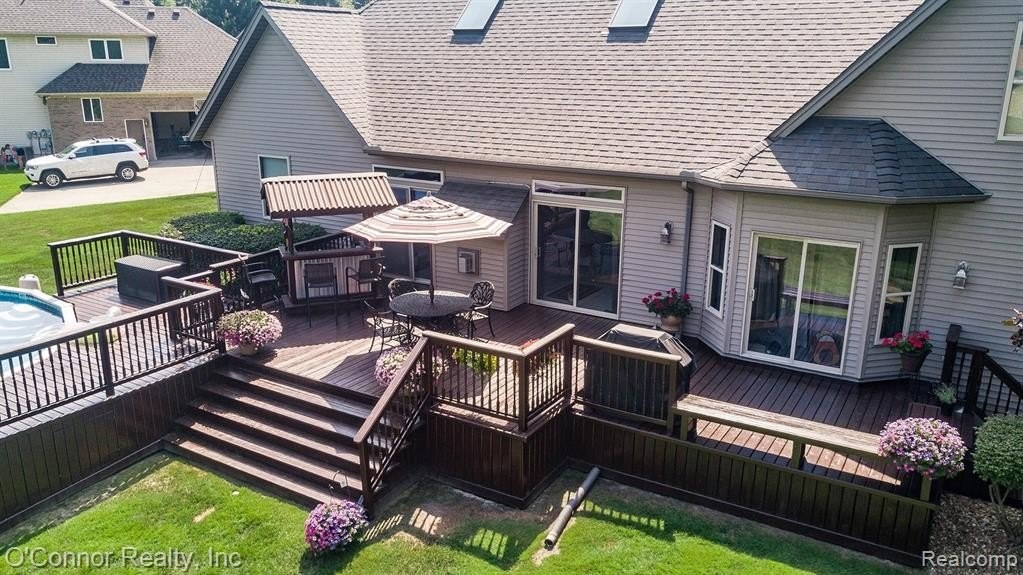 Absolutely stunning custom two story home offering 3, 359 sq. ft. of beautifully finished living space in one of Marysvilles elite neighborhoods. This 45 bedroom, 3 full bath home showcases a gorgeous custom kitchen with high-end finishes and modern design. The main floor features gleaming hardwood floors, large family room with fireplace, vaulted ceiling, large windows, and sliding doors let in lots of light, and a spacious primary suite has door leading to deck along with a completely remodeled bathroomcustom tile shower, large soaking tub, and elegant fixtures. The main bath has also been updated with stylish custom tile. Upstairs youll find a bedroom, full bath, large sitting/media area, and an additional family room that could serve as a 5th bedroom. Every detail in this home reflects quality craftsmanship and thoughtful designmove-in ready and truly one-of-a-kind. All this on a full basement with 2 egress windows, prepped for a future bathroom, Rec room area and plenty of storage. Has 3 car attached heated garage. Out back is spacious deck with custom tiki bar, and overlooking large back yard, heated pool. Storage shed too. This is truly a MUST SEE ! To many features to list everything. This beautiful house in Marysville's hidden gem neighborhood